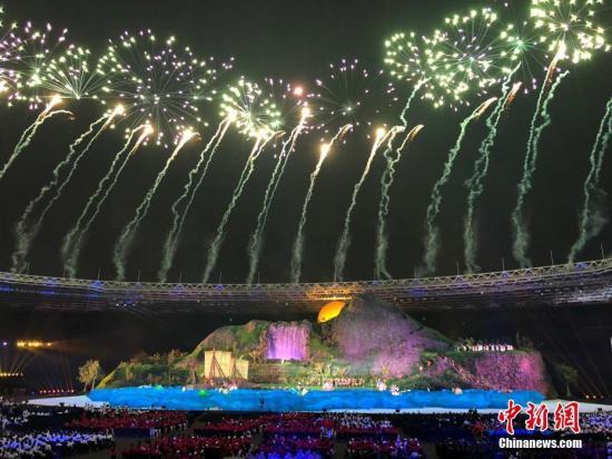 中新社雅加达8月18日电(记者 卢岩)随着印尼羽毛球名宿王莲香点燃位于雅加达朋加诺体育场中央“火山”造型的火炬塔,第十八届亚运会正式拉开帷幕。以“千岛之国”著称的印度尼西亚,在两个多小时的开幕式中,描绘出一幅多元文化、万种风情的美丽画卷。
