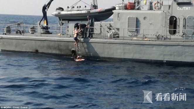 凯·朗斯塔夫与克罗地亚救援人员在船舱里