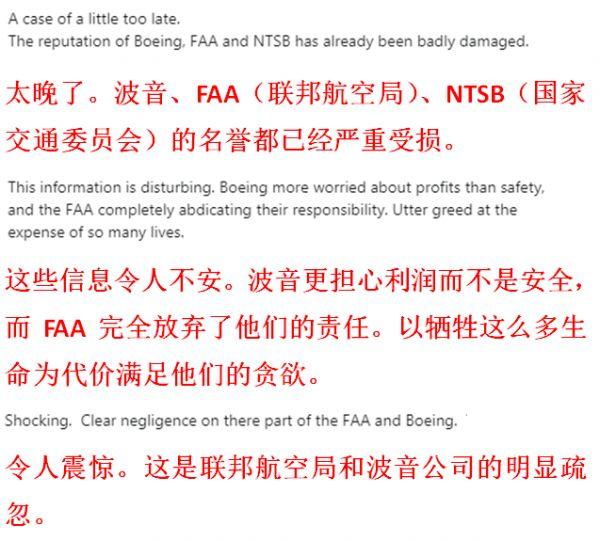 连日来,美国网友对波音和FAA的讨伐声音不断: