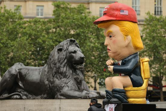 近一年之后,特朗普重返英国,但访问气氛并没多大改观。据英国广播公司报道,跟他上次访英时一样,特朗普全程将遭遇英国各界民众的抗议示威。抗议者表示,这次还准备放飞“特朗普宝宝”造型的巨大气球,并在伦敦、曼彻斯特、贝尔法斯特和伯明翰等地举行大规模集会示威。