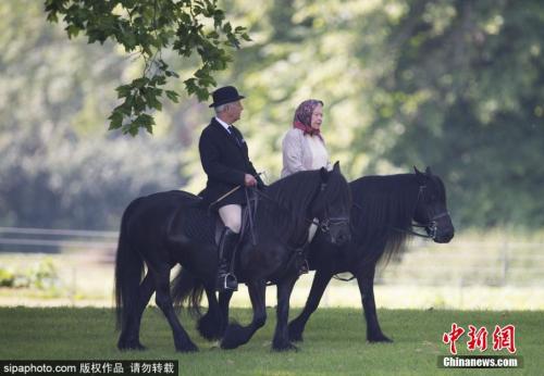 资料图:英国伊丽莎白二世女王与菲利普亲王在温莎城堡内骑马散步。图片来源:Sipachina 版权作品 请勿转载