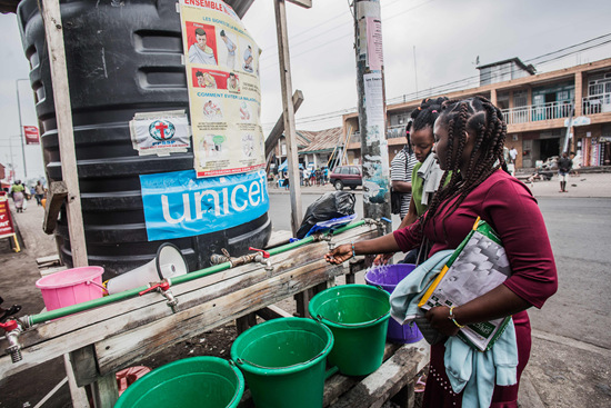 7月31日,在刚果(金)戈马,居民在一处清洗站洗手。刚果(金)卫生部30日晚间发布消息称,该国东部重要城市戈马市最新确诊一例埃博拉病例。这是7月该市确诊的第二例埃博拉病例。新华社/法新