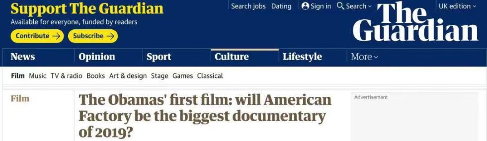 英国《卫报》发布消息:奥巴马夫妇的首部电影《美国工厂》是否会成为2019年最具影响力的纪录片?