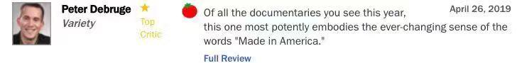 《variety》认为这是今年最佳的纪录片,颠覆了人们对美国制造的印象。