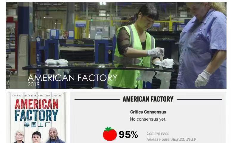 电影《美国工厂》是一部美国纪录片,从海报上不难看出,这部纪录片里是围绕着中国人讲述的。该片今年年初在圣丹斯国际电影节首映后,获得一致好评,并获得美国纪录片单元最佳导演奖。预告片放出后,英美媒体更是大力宣推。