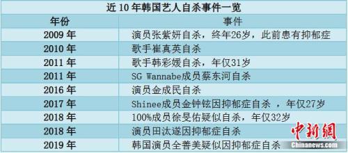 截至2017年的近10年间,韩国已有超过30位演艺界相关人士,以自杀的方式结束生命。