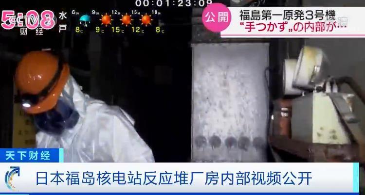 视频中,原子力规制委员会的工作人员身穿数层防护服,戴着手套和遮盖全脸的面罩,全副武装地进入了厂房内部。从画面中可以看到,厂房内面目全非,地面覆盖着大量瓦砾,配管和管道也断裂并散落一地。工作人员在进入建筑二层时,配管表面测出的最大辐射量,达到每小时150毫西弗,而正常人每年,在正常环境中的辐射摄取量是1~2毫西弗。