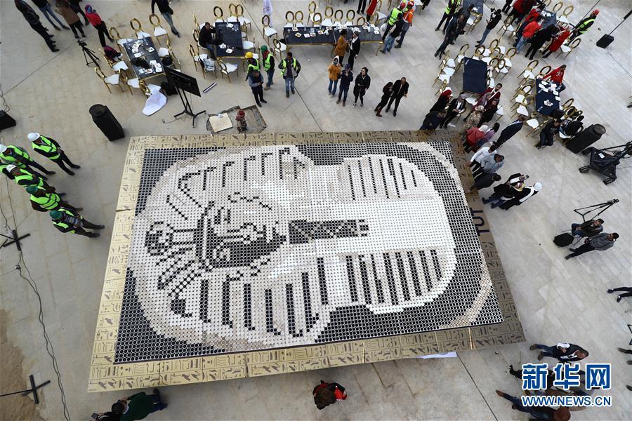 新华社开罗12月28日电(记者李碧念)埃及旅游和文物部28日在开罗附近在建的大埃及博物馆举行仪式,庆祝埃及青年用咖啡杯拼成的巨型图坦卡蒙黄金面具图案打破吉尼斯世界纪录。