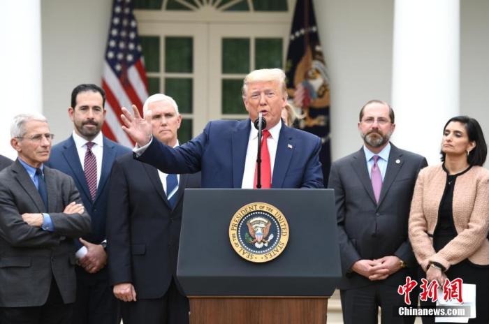 资料图:当地时间3月13日,美国总统特朗普在白宫宣布“国家紧急状态”,应对新冠肺炎疫情。中新社记者 陈孟统 摄