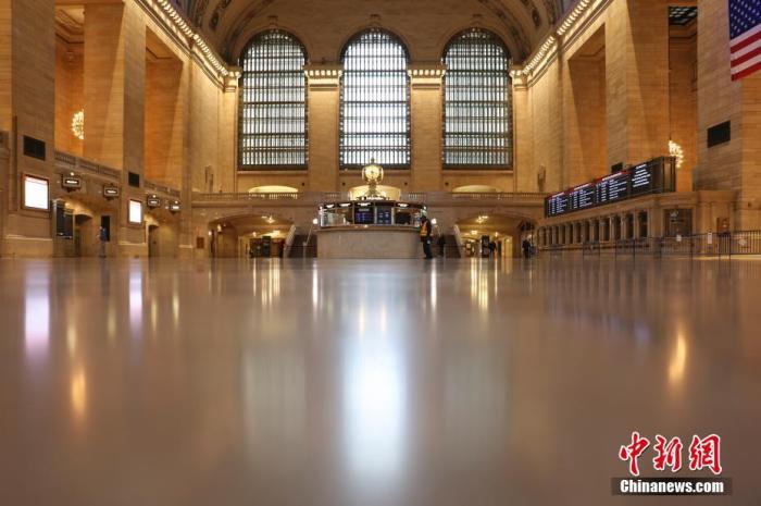 当地时间4月12日,西方传统节日复活节,受新冠肺炎疫情影响,纽约中央车站大厅行人寥寥。中新社记者 廖攀 摄
