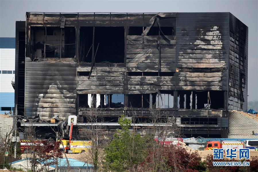 这是4月30日在韩国京畿道利川市拍摄的发生火灾的建筑。据中国驻韩国大使馆30日消息,一名中国公民在韩国利川市一物流仓库29日发生的火灾中不幸死亡。该火灾已造成至少38人死亡、10人受伤。 新华社/纽西斯通讯社