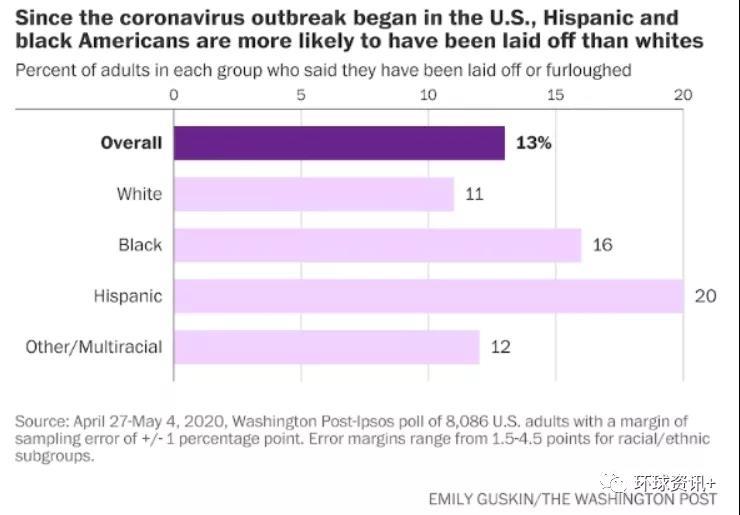 △《华盛顿邮报》民调数据显示:拉美裔群体和非洲裔群体失业率高于白人群体