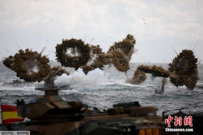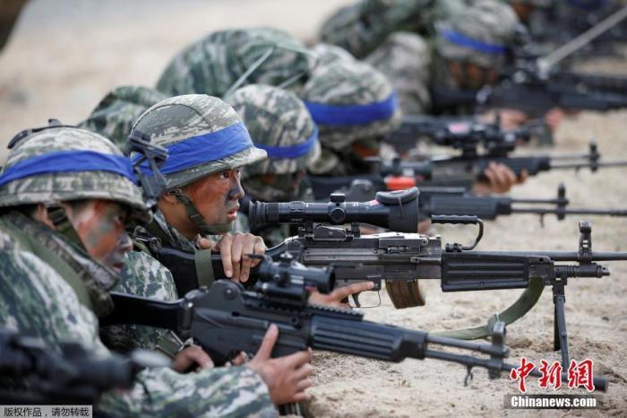 资料图:当地时间2017年4月2日,韩国浦项市,韩国海军参加韩美联合军演“鹞鹰”登陆演习。