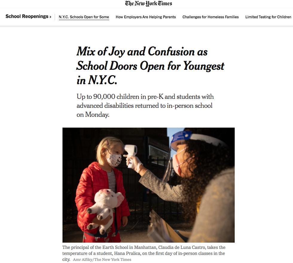 △据《纽约时报》报道,市长德布拉西奥无视警告,强行重启校园。