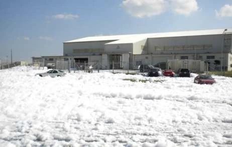 2013年,冲绳县嘉手纳空军基地自动灭火系统出现故障,喷出数万升消防泡沫。图片来源:《外交学者》