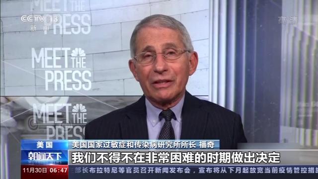 美国国家过敏症和传染病研究所所长 福奇: 我认为我们将面临另一种情况,作为一个国家、一个州、一个城市和一个家庭,我们不得不在非常困难的时期做出决定,特别是在假期要限制一些我们想做的事情,因为我们正处于一个非常危险的境地,我们正处在一个陡峭斜坡的中间。