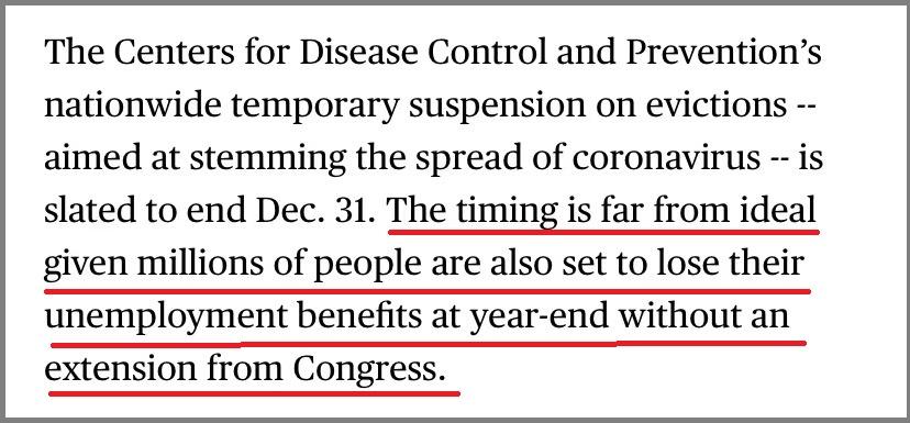 此前,美国疾病控制和预防中心(Centers for Disease Control and Prevention)曾在全国范围内暂停驱逐行动,旨在阻止新冠病毒的传播,这一“暂缓驱逐令”定于12月31日结束。彭博社指出,“暂缓驱逐令”的中止还为时尚早,因为仍有数百万人将在年底失去他们的失业救济金。