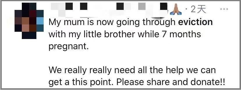 “我怀孕7个月的妈妈和我的弟弟将被驱逐,我们真的很需要帮助。”这是一网友在美国某社交平台上发出的求助帖。