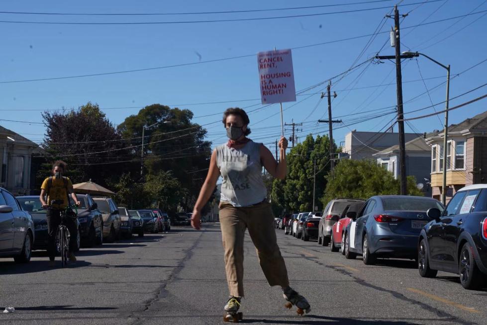 △在街头手持“取消租金”牌子的美国人。(图片来自社交媒体)