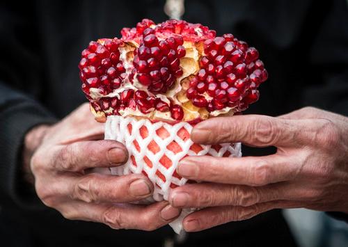 2020年12月20日,商贩在伊朗首都德黑兰的市场上出售石榴,供市民为“雅尔达”之夜的聚会做准备。新华社发(艾哈迈德·哈拉比萨斯摄)