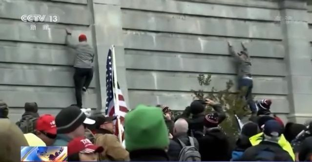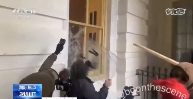 美国有线电视新闻网主持人: 你们即将看到的,是一群暴徒从国会大厦西侧的入口强行进入。