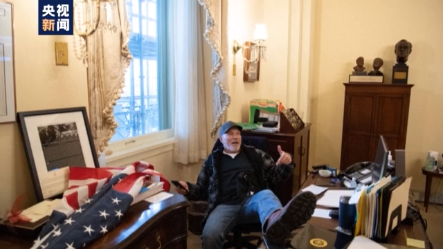躺在佩洛西办公椅上的男子名叫理查德·巴内特,此人为阿肯色州一个支持枪支权利的极右翼组织领导人,曾发帖反对加强枪支管制。他还参加过“匿名者Q”组织的活动。
