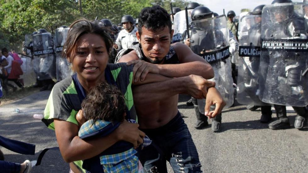 △被警察驱赶的中南美洲移民