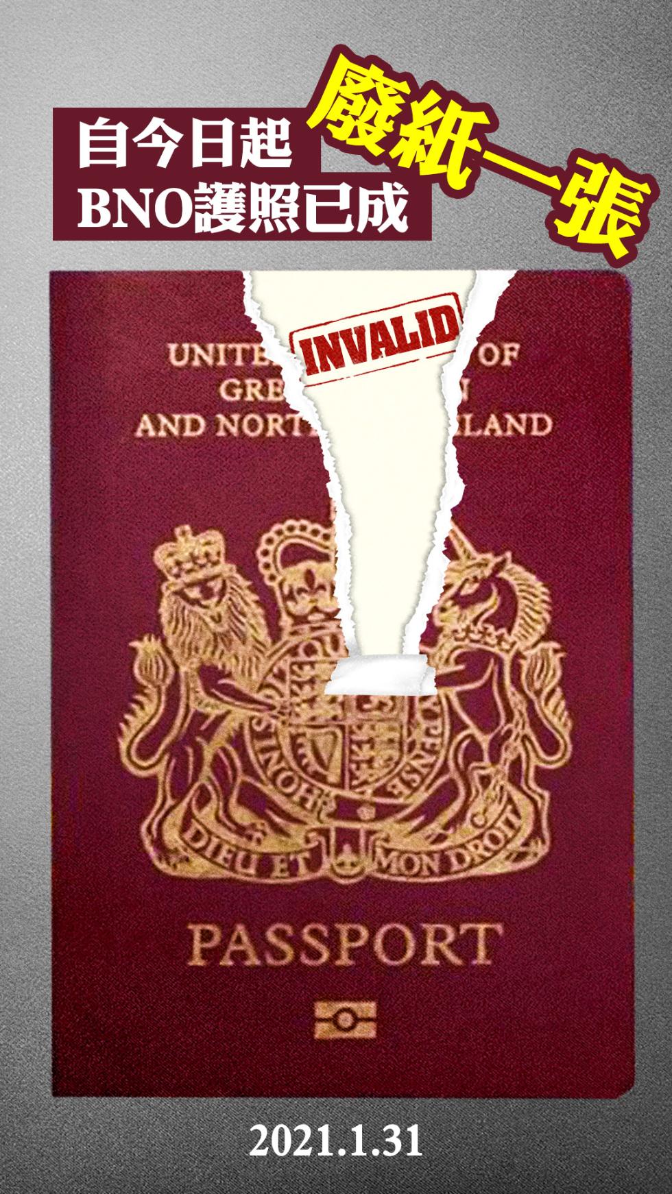 BNO护照正式成为废纸一张!针对英国为港人“定制”的英国国民(海外)(BNO)护照及签证政策落实生效一事,外交部发言人日前宣布:“自1月31日起,中方不再承认所谓BNO护照作为旅行证件和身份证明”。这一反制措施立刻得到特区政府全力配合:BNO护照不能用于在香港出入境,亦不会在香港获承认为任何形式的身份证明。