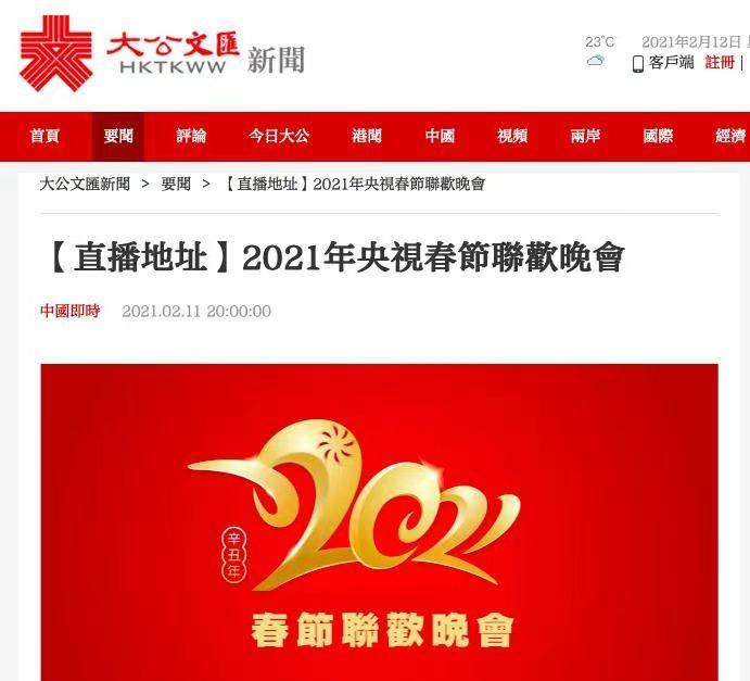香港电视广播有限公司(TVB) 全程直播了春晚,大公文汇、《香港商报》、橙新闻 也在新媒体平台上进行网络在线直播或摘播,吸引大量观众实时收看,并引起强烈反响。澳门广播电视公司及旗下新媒体平台澳广视网站 对春晚进行了转播。