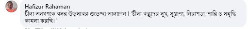 孟加拉国网友哈菲祖尔·拉曼 留言:“中国的春晚让人赏心悦目,祝中国人民健康幸福,祝中国不断强大、发展。”