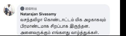 印度网友纳塔拉简·斯瓦萨米 留言:“春晚特别精彩,舞台美丽炫目。祝大家新年快乐。”