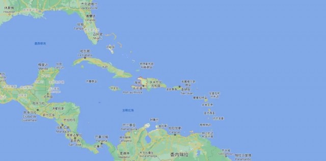 海地与多米尼加同处一岛,临近美国佛罗里达州 谷歌地图