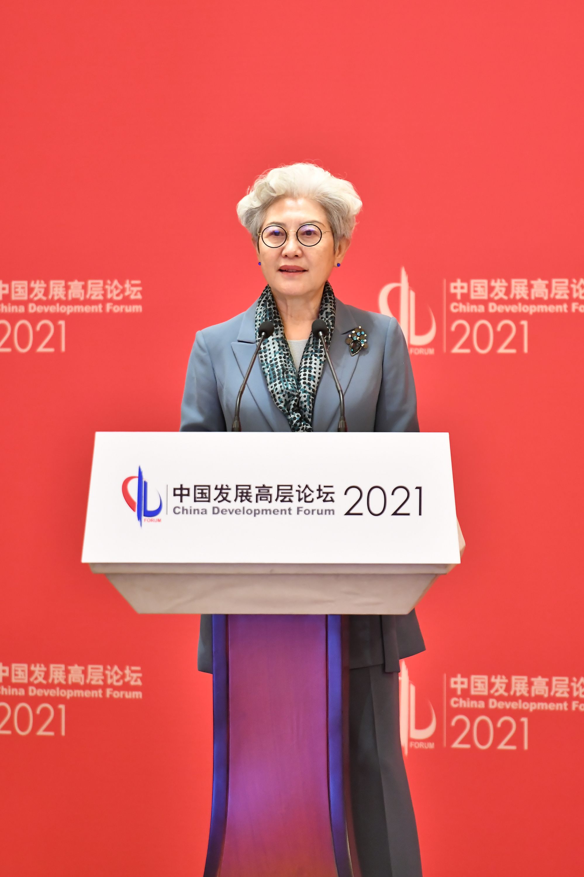 3月20日,清华大学战略与安全研究中心主任傅莹在中国发展高层论坛2021年会经济峰会上发言。新华社记者 李鑫 摄