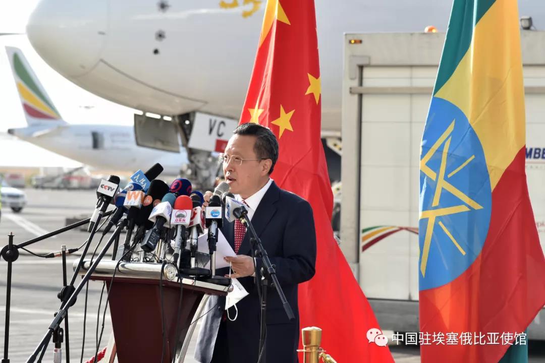 赵大使在致辞中表示,疫情发生后,中埃双方守望相助,树立了中非团结抗疫的榜样。中国是首个通过政府间双边渠道向埃塞提供疫苗援助的国家,充分展现了两国间深厚的传统友谊。在当前疫情严峻的形势下,相信疫苗将为保护埃塞人民生命安全和身体健康发挥积极作用。