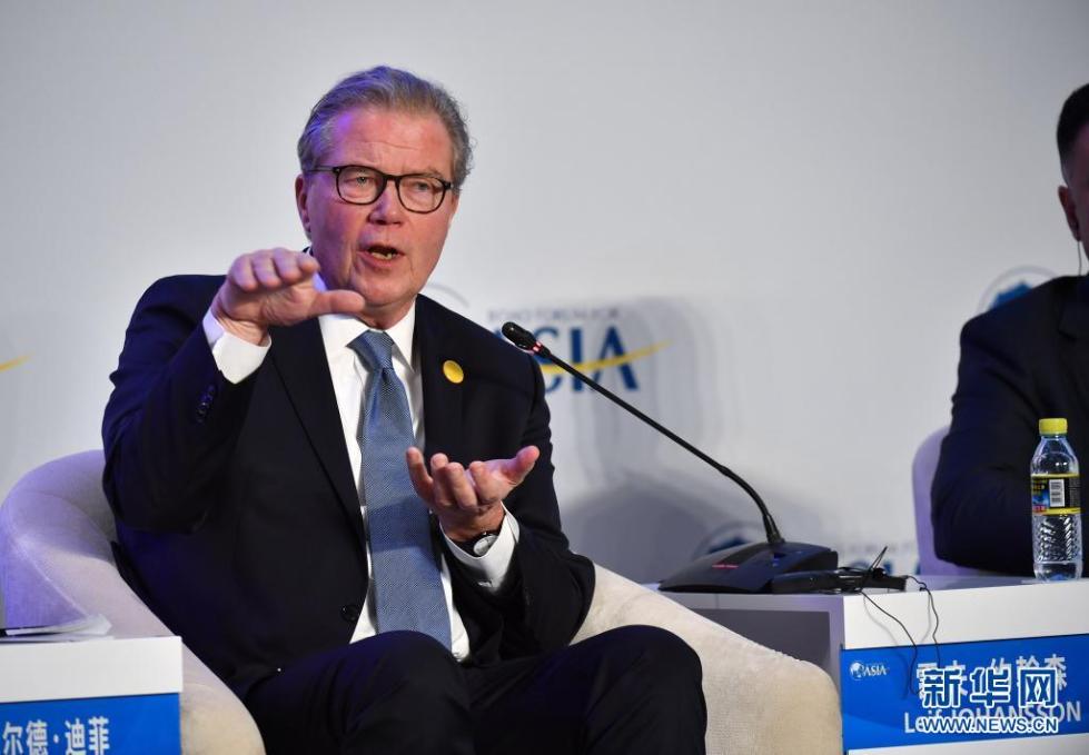 阿斯利康公司董事长雷夫·约翰森在博鳌亚洲论坛2019年年会“‘AI+’时代来了吗?”分论坛上发言(2019年3月27日摄)。新华社记者 郭程 摄
