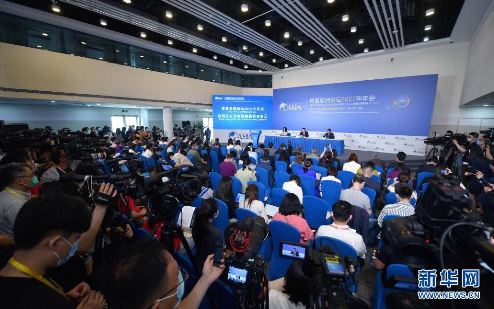 这是博鳌亚洲论坛2021年年会新闻发布会现场(4月18日摄)。新华社记者 郭程 摄