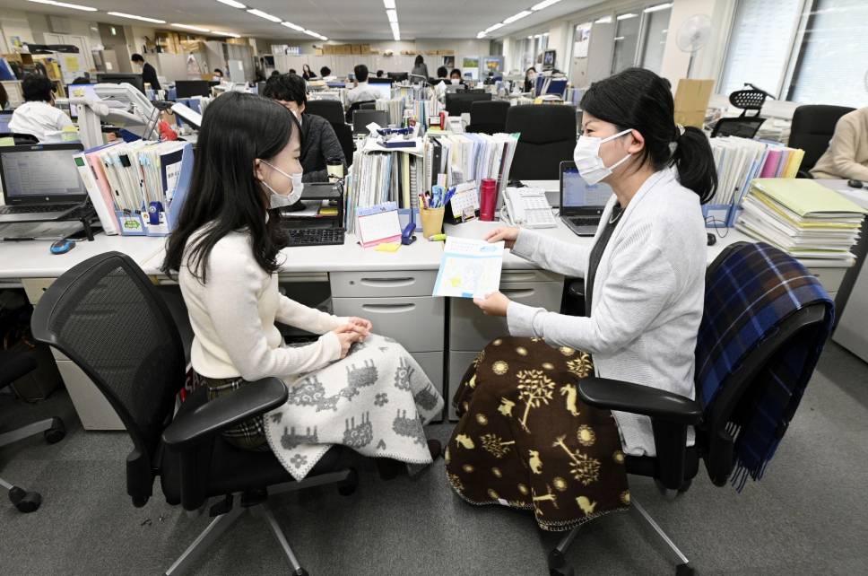 日本东京,中央政府环境省的办公室里,有大量纸质文件。图片来源 视觉中国