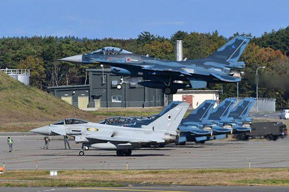 英空军“台风”战机与日自卫队F-2战机联训。