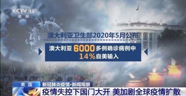 澳大利亚卫生部2020年5月公布,澳大利亚6000多例确诊病例中,14%自美输入。