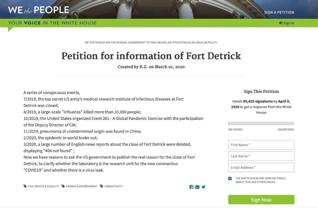 △白宫网站请愿截图
