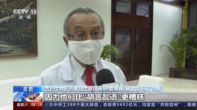 古巴生物医药集团主席团顾问 路易斯·赫雷拉·马丁内斯: 这展现了美国有多么虚伪,他们在政治上扮演的角色就是随意指责任何他们想指责的国家,我认为这完全就是典型的傲慢态度,自认为凌驾于全世界之上。