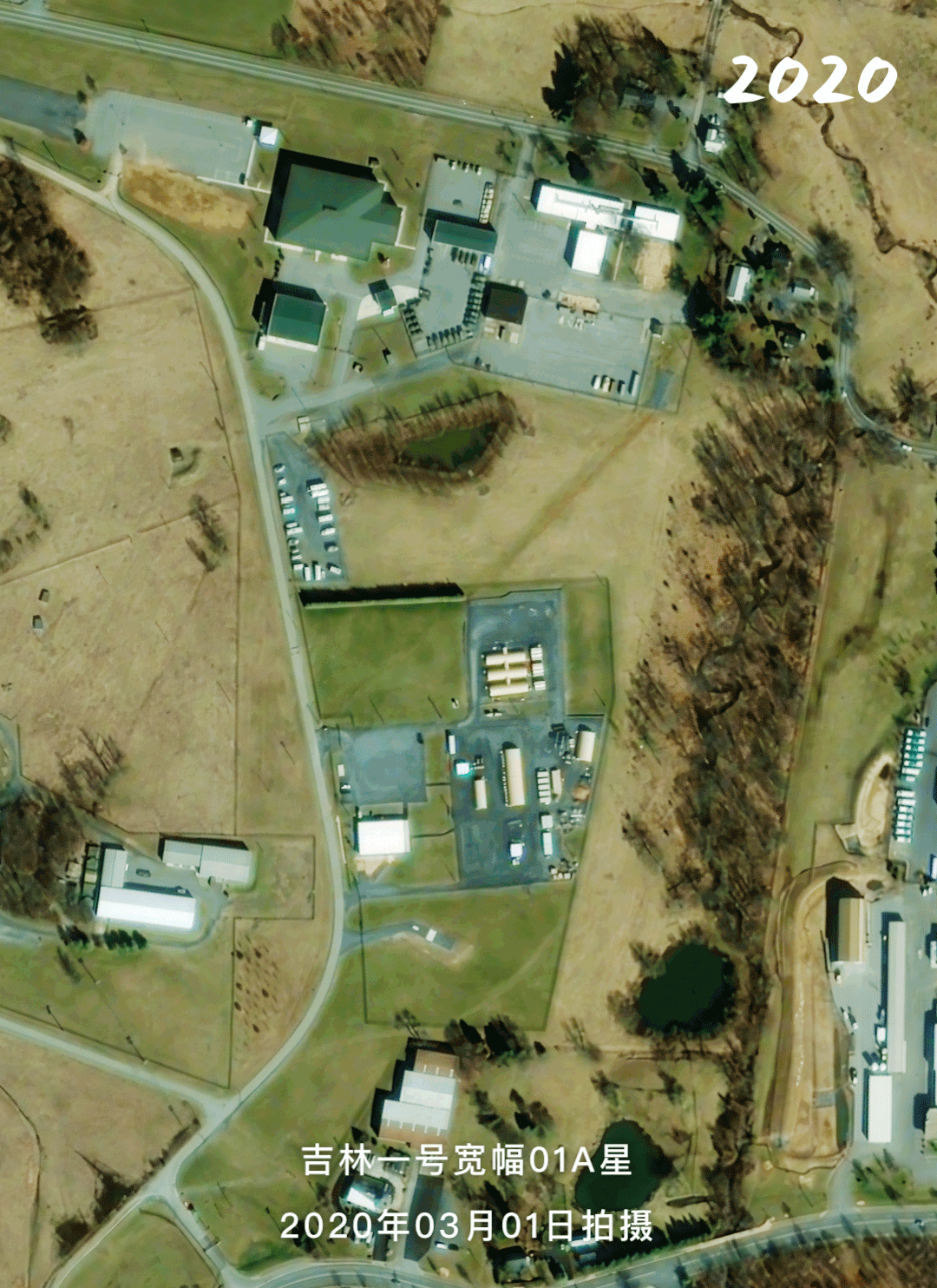 14日,“吉林一号”微信公众号发布一组由“吉林一号”卫星拍摄的德特里克堡卫星照片。正是这一组照片,揭开了德特里克堡生物实验室同新冠病毒紧密相连的更多疑点。