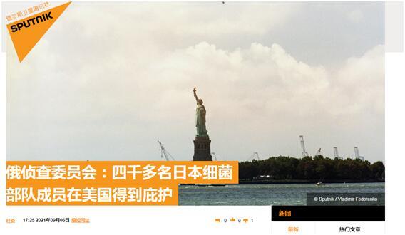 【环球网报道】“俄侦查委员会:四千多名日本细菌部队成员在美国得到庇护。”俄罗斯卫星通讯社6日以此为题报道称,俄罗斯侦查委员会副主席在一场论坛上怒批日本军国主义二战暴行和美国对这批杀人凶手的庇护。