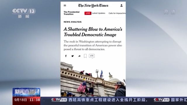 《纽约时报》指出,暴力冲击国会事件是对美国麻烦不断的民主形象的“粉碎性打击”。