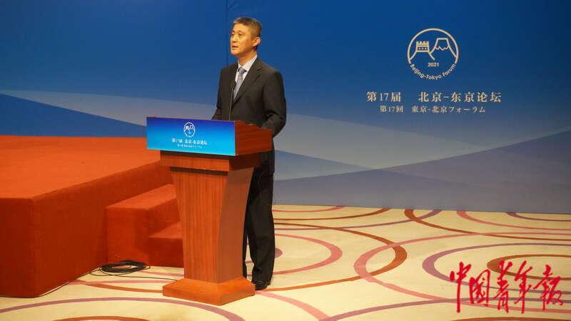 10月26日,第十七届“北京-东京论坛”闭幕式,中国外文局副局长兼总编辑高岸明宣读《北京共识》。中青报·中青网记者 马子倩/摄
