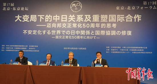 10月26日,为期两天的第十七届“北京-东京论坛”闭幕。论坛结束后,中日双方在北京、东京两地共同举行记者发布会。 中青报·中青网记者 马子倩/摄