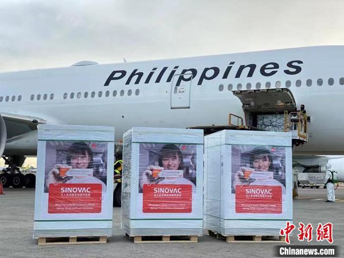 11月17日,菲律宾政府采购的中国科兴新冠疫苗运抵菲首都马尼拉。中新社发 中国驻菲律宾使馆 供图