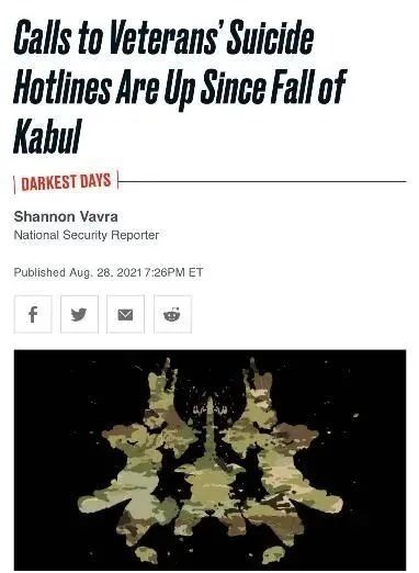 而美国常年的穷兵黩武,特别是以失败告终的20年“反恐战争”,更是让越来越多的美国军人染上了战争后遗症。据美国新闻网站《野兽日报》报道,随着美军撤出阿富汗以及塔利班迅速接管阿富汗,曾驻军阿富汗的美国退伍军人在新闻中目睹了这一过程后,出现了不同程度的情绪波动及心理健康问题,向美国“退伍军人危机热线”寻求帮助的人越来越多。