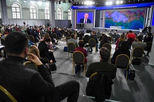 中国青年报客户端莫斯科、北京12月24日电(中青报·中青网驻俄罗斯记者 张健 记者 赵祺)莫斯科当地时间12月23日12时,俄罗斯总统普京的2021年年度记者会在马涅什展览中心举行。持续近4个小时的记者会,普京回答了国内外记者提出的55个问题。在俄疫情形势严峻、与北约矛盾升级的双重背景下,普京的第17次年度记者会格外引人注目。全球媒体和民众都希望通过普京之口,找寻俄方在国内、国际及地区热点问题上的官方权威立场。