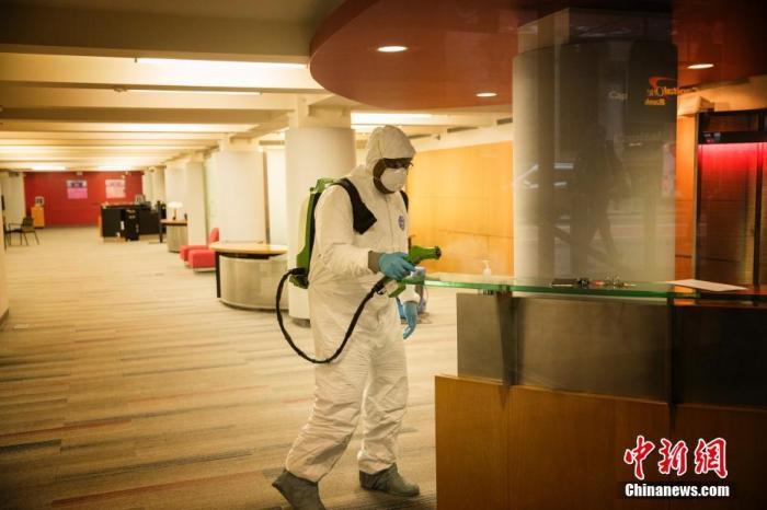 当地时间12月29日,美国纽约曼哈顿一家银行在进行消毒工作。中新社记者 廖攀 摄